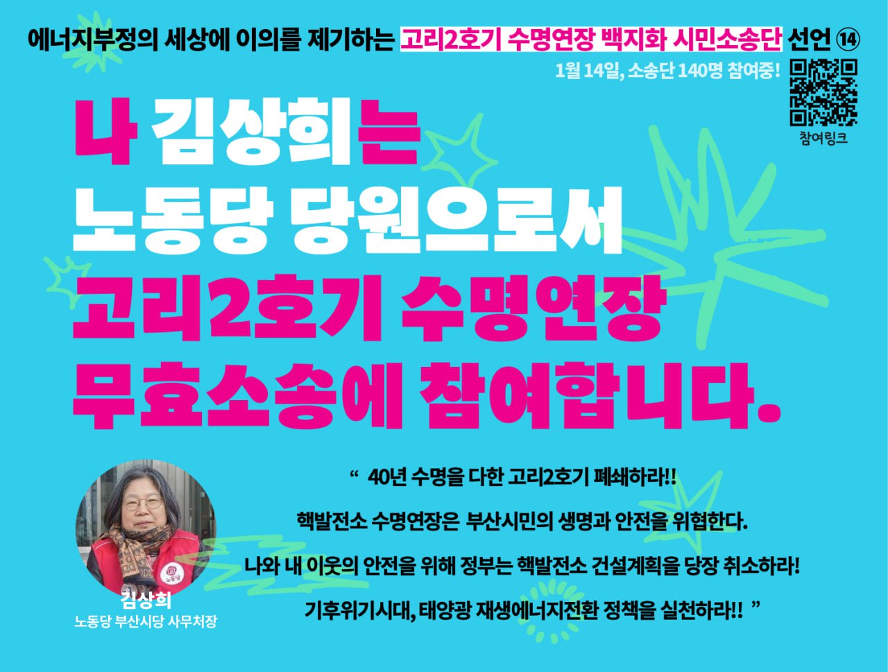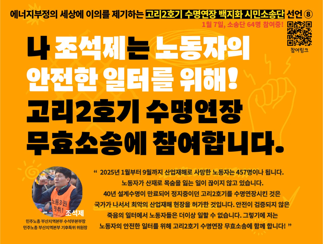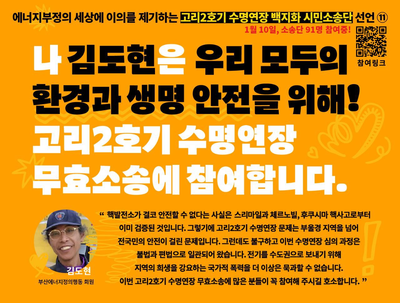 지난 2월 1일, 고리2호기 수명연장 무효소송 시민소송단 모집이 완료되었습니다.