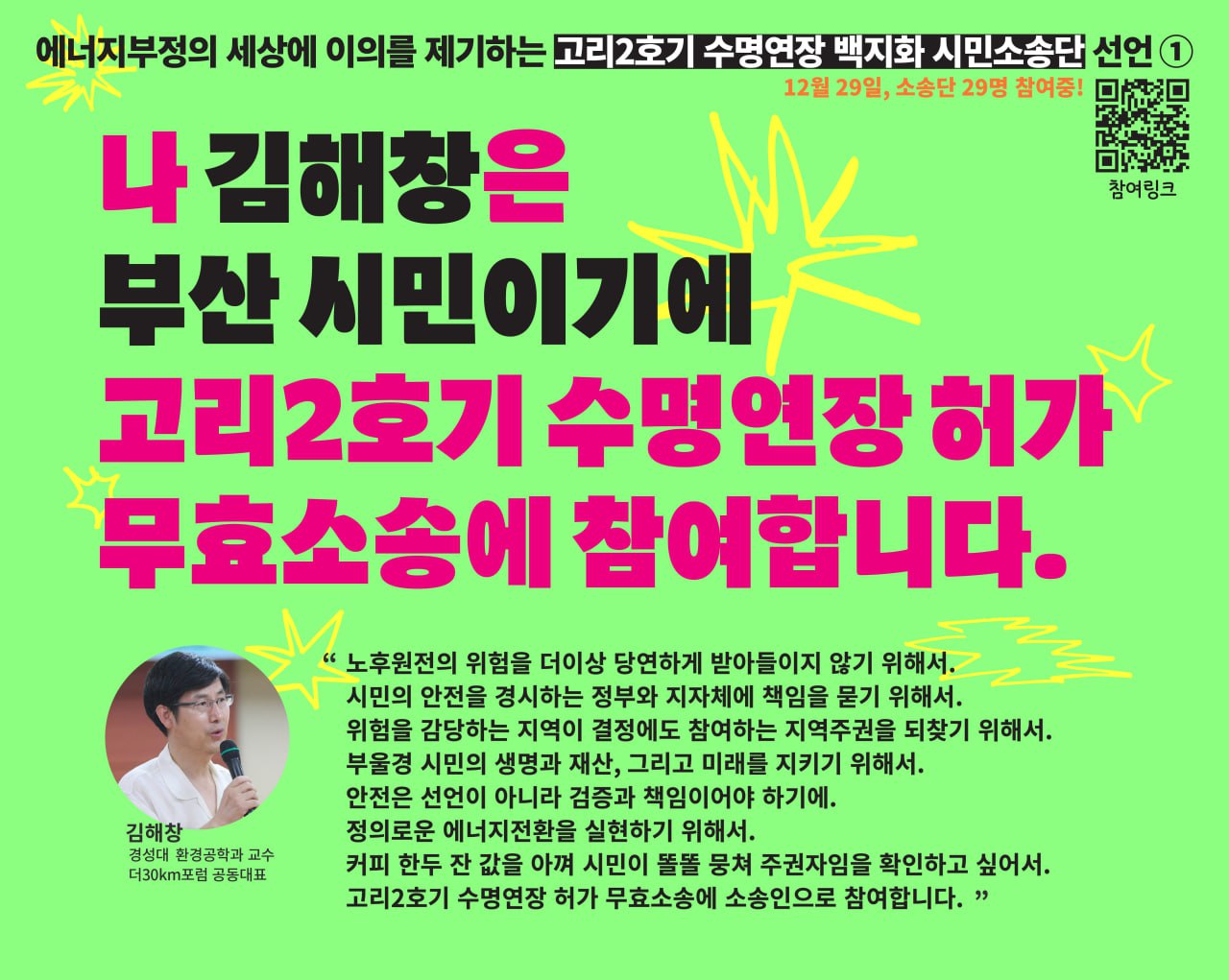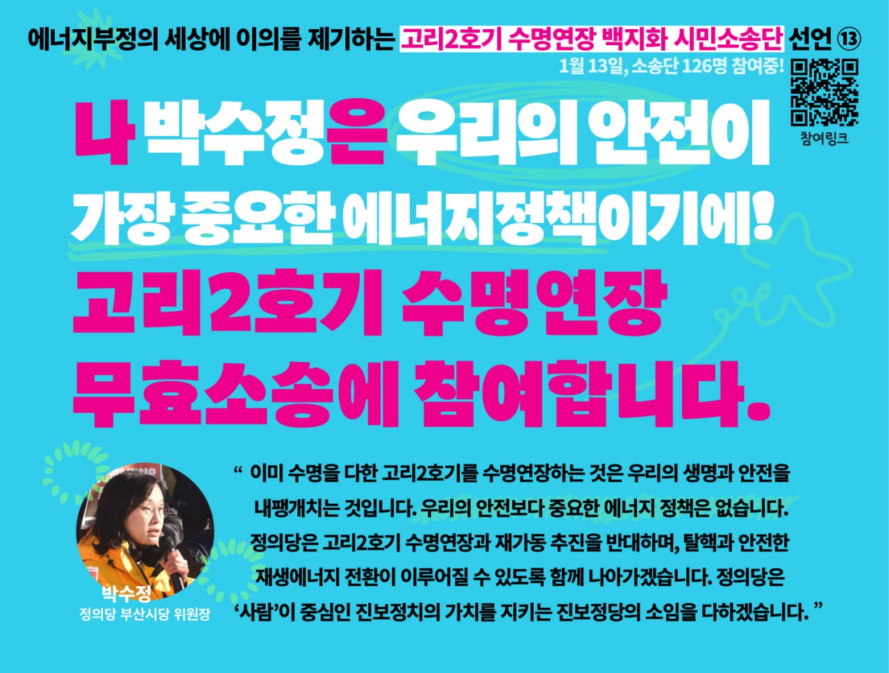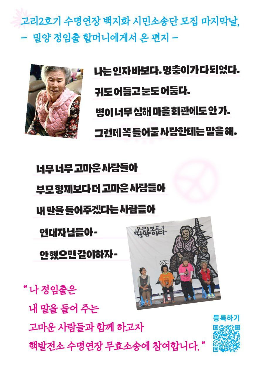 지난 2월 1일, 고리2호기 수명연장 무효소송 시민소송단 모집이 완료되었습니다.