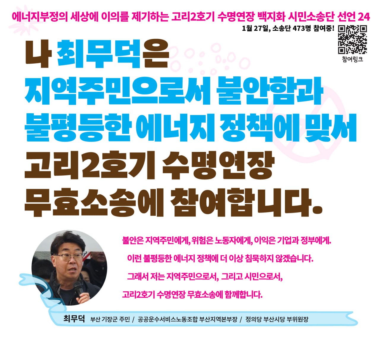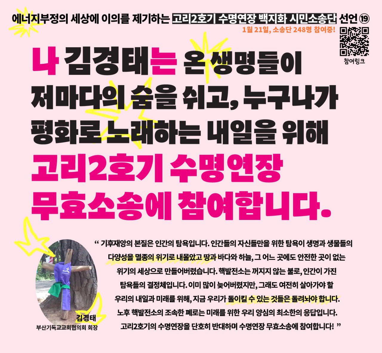 소송단 모집을 진행하며 많은 분들이 소송단 모집에 함께 애써 주셨습니다. 그 가운데 <소송단 참여 선언>으로 많은 분들이 함께해 주셨는데요. 그 선언문을 공유합니다.